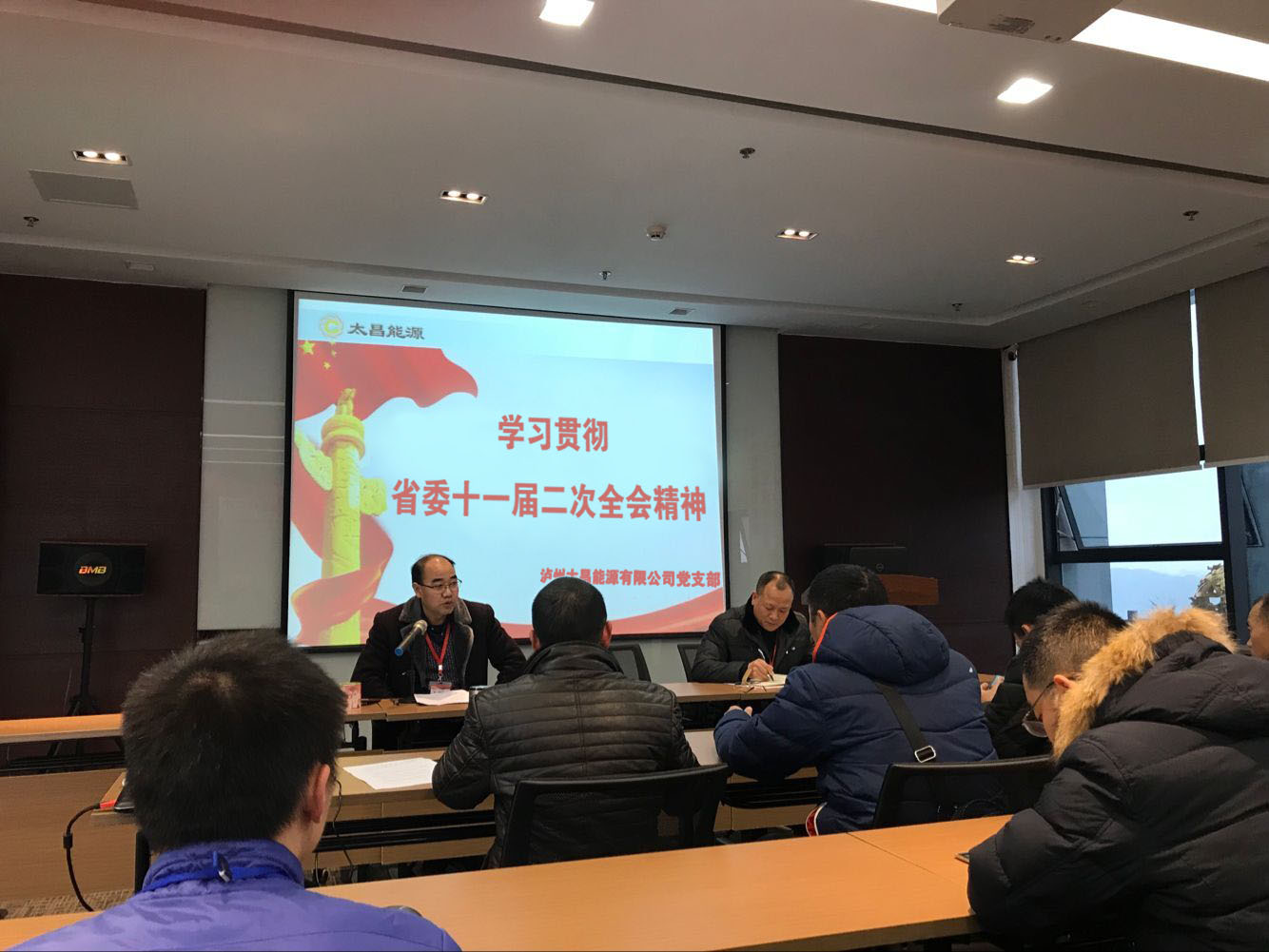 2018年1月12日,公司召開了由公司黨員及入黨積極分子參與的專題會議,學(xué)習(xí)貫徹省委十一屆二次全會精神。黨支部書記邱清平詳細(xì)解讀十一屆二次全會精神。